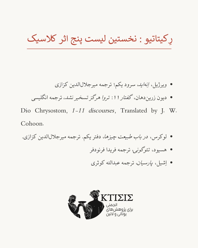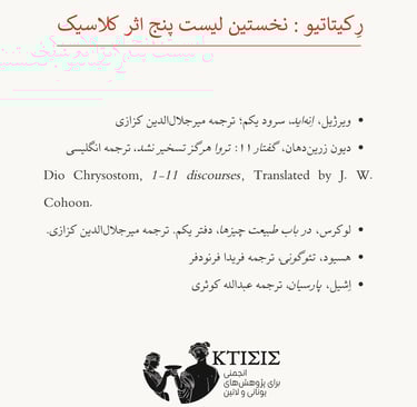 رِکیتاتیو در انجمنِ کتیسیس رنگِ دیگری به خود میگیرد و مجموعهای از محافل خواهد بود، که در آن علاقهمندان برایِ خواندنِ یکی از کلاسیکهایِ ادبیاتِ یونانی یا لاتین گردِ هم میآیند.
